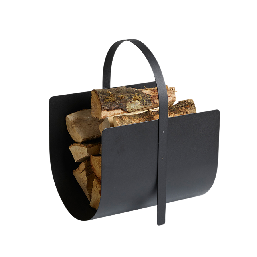 Denna vedkorg är Inte bara ett charmigt sätt att förvara din ved på, den kan samtidigt användas när du hämtar ved. Handtaget fungerar som ett stöd för den välvda botten, som utgör själva korgen, och säkerställer därmed dess stabilitet. De synliga ändarna av veden bidrar till att göra korgen till ett dekorativt inslag i vardagsrummet.